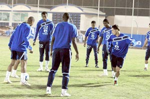وكان تدريب البارحة قد أحيط بالسرية التامة حيث أغلق مدرب الفريق كل المنافذ خلال المناورة الرئيسية التي أقيمت وشهدت تركيز المدرب على الدخول برأسي حربة (ياسر القحطاني - عيسى المحياني) وتفعيل الجوانب الهجومية في إشارة لرغبته بحسم الأمور والتحليق بالصدارة برصيد 9 نقاط. هذا ووصلت عند العاشرة من مساء أمس على متن طائرة خاصة بعثة فريق الأهلي الإماراتي وحظيت فور وصولها باستقبال رسمي وجد فيه مساعد أمين عام نادي الهلال فهد الحميدي وعضو العلاقات العامة بالنادي ياسر الطلاسي وكل من حمد الجنيبي و حمد الحبسي وسهيل الجنيبي وسالم بجنف من السفارة الإماراتية، على أن يؤدي الفريق الإماراتي مرانه الوحيد مساء اليوم (الثلاثاء) في استاد الملك فهد الدولي عند الساعة ال7:30م.