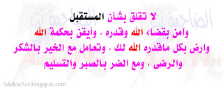 رحمة الله تعالى علينا وعليه 1. إن لم تستطع قول الحق فلا تصفق للباطل 2. إذا لم تجد لك حاقدا فاعلم أنك إنسان فاشل 3. لا تقلق من تدابير البشر فأقصى ما يستطيعون هو تنفيذ إرادة الله 4. لن يحكم أحد فى ملك الله إلا بمراد الله 5. لا تعبدوا الله ليعطي بل اعبدوه ليرضى فإن رضى أدهشكم بعطائه 6. إذا رأيت فقيرا فى بلاد المسلمين فاعلم أن هناك غنيا سرق ماله 7. لا يقلق من كان له أب.. فكيف يقلق من كان له رب راق لي فنسخته لأحبابي. |