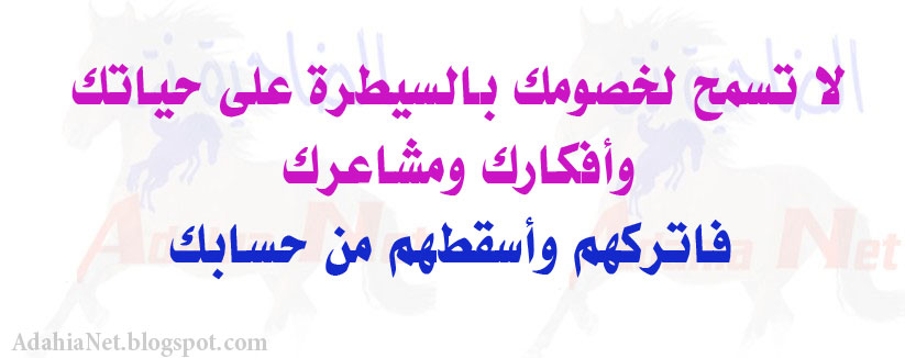 رحمة الله تعالى علينا وعليه 1. إن لم تستطع قول الحق فلا تصفق للباطل 2. إذا لم تجد لك حاقدا فاعلم أنك إنسان فاشل 3. لا تقلق من تدابير البشر فأقصى ما يستطيعون هو تنفيذ إرادة الله 4. لن يحكم أحد فى ملك الله إلا بمراد الله 5. لا تعبدوا الله ليعطي بل اعبدوه ليرضى فإن رضى أدهشكم بعطائه 6. إذا رأيت فقيرا فى بلاد المسلمين فاعلم أن هناك غنيا سرق ماله 7. لا يقلق من كان له أب.. فكيف يقلق من كان له رب راق لي فنسخته لأحبابي. |