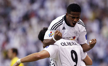 أوليفيرا يحتفل بهدفه الأول في شباك سيونجنام. تصوير: عبد الرحمن المالكي ـ «الاقتصادية»