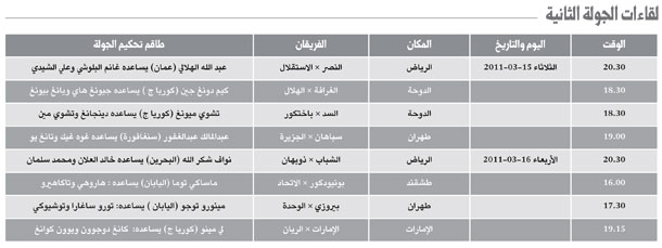اليوم في الدوحة التي يشارك فيها الهلال والأهلي؛ حيث يلتقي في المجموعة الأولى الأهلي السعودي مع نظيره العربي القطري، والمحرق البحريني مع الشباب الإماراتي، وفي المجموعة الثانية يواجه الهلال السعودي كاظمة الكويتي، وأخيرا يلعب الريان القطري أمام صحم عمان.